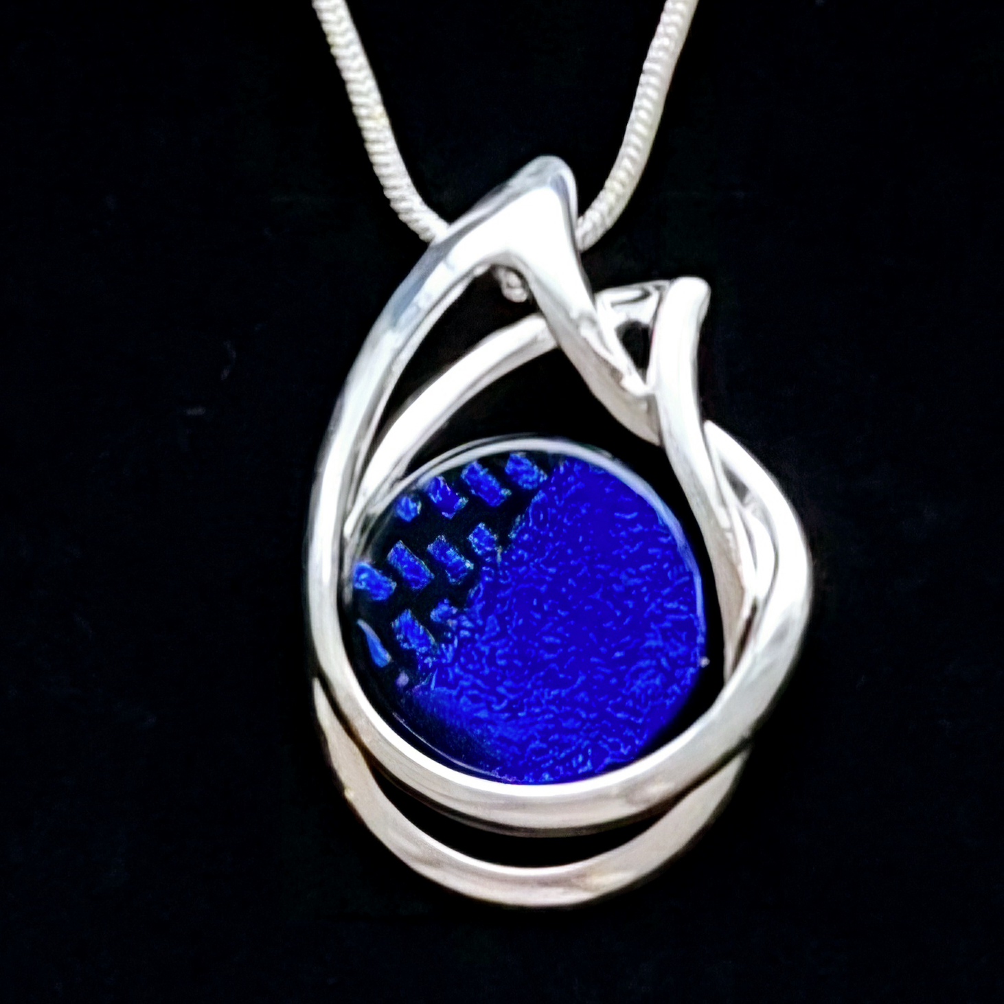 Halsband 2,8x4 cm, med handgjord glascabochon. Infattningen är en nickelfri stomme med en tjock silverplättering. En 2mm ormlänk ingår, 45 cm. Om du önskar en annan längd (40, 50, 55 cm) så skriv det i meddelandefältet vid beställning.
