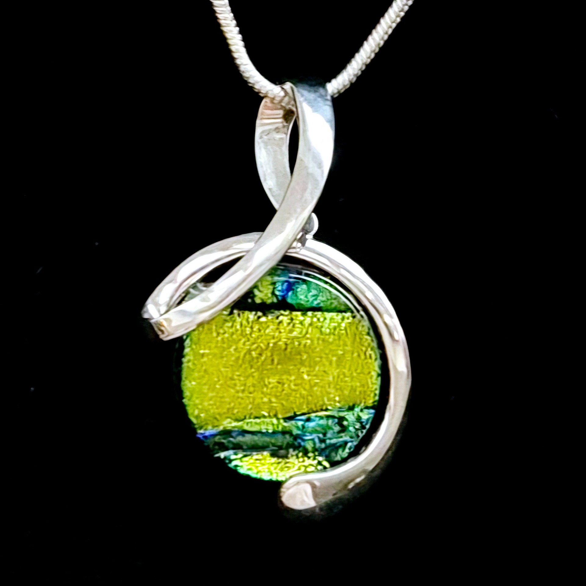 Halsband 2,8x4 cm, med handgjord glascabochon. Infattningen är en nickelfri stomme med en tjock silverplätering. En 2 mm ormlänk ingår, 45 cm. Om du önskar en annan längd (40, 50, 55 cm) så skriv det i meddelandefältet vid beställning.