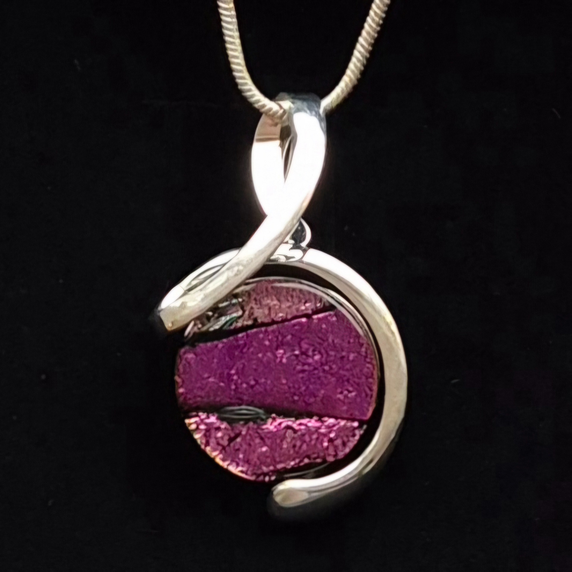 Halsband 2,8x4 cm, med handgjord glascabochon. Infattningen är en nickelfri stomme med en tjock silverplätering. En 2 mm ormlänk ingår, 45 cm. Om du önskar en annan längd (40, 50, 55 cm) så skriv det i meddelandefältet vid beställning.