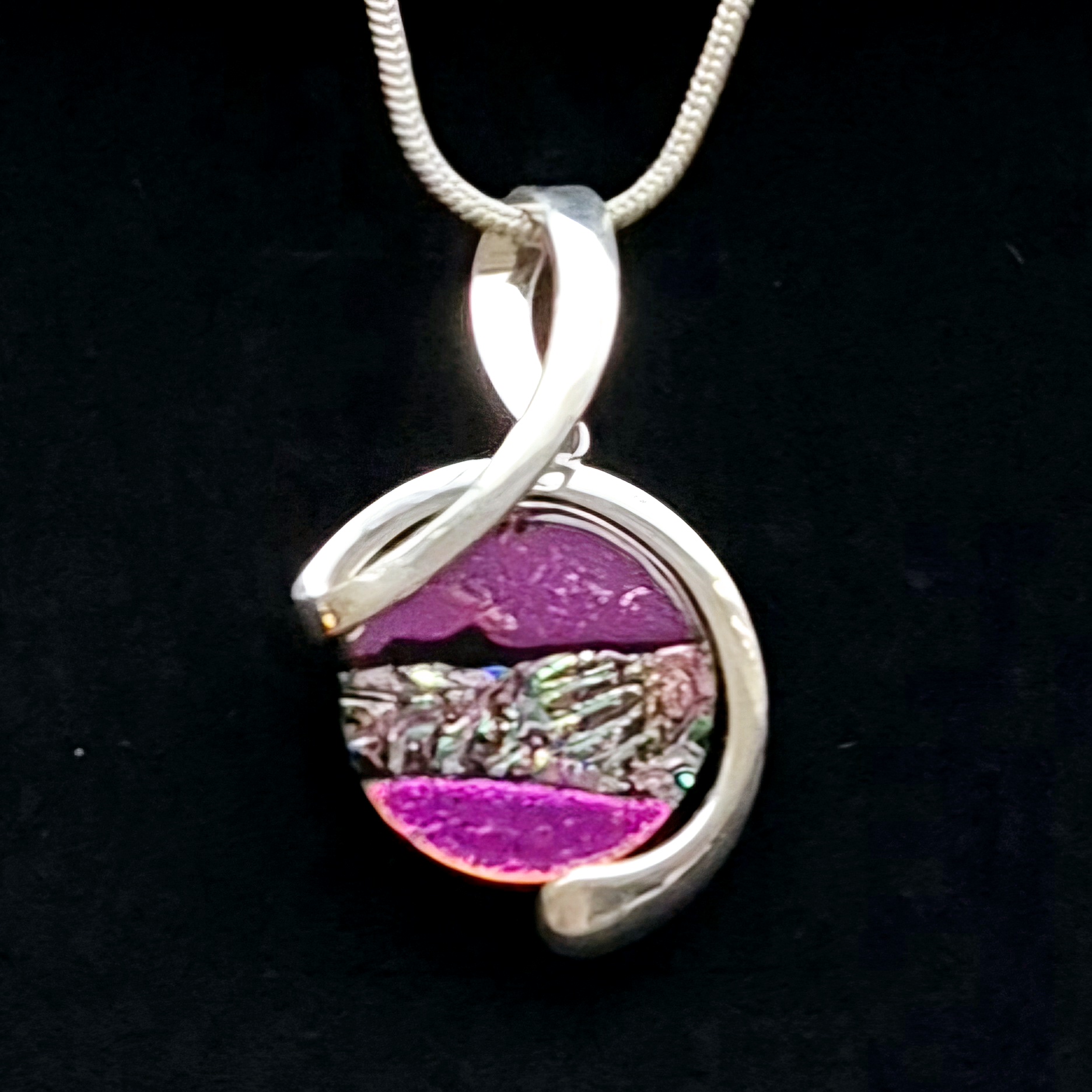 Halsband 2,8x4 cm, med handgjord glascabochon. Infattningen är en nickelfri stomme med en tjock silverplätering. En 2 mm ormlänk ingår, 45 cm. Om du önskar en annan längd (40, 50, 55 cm) så skriv det i meddelandefältet vid beställning.