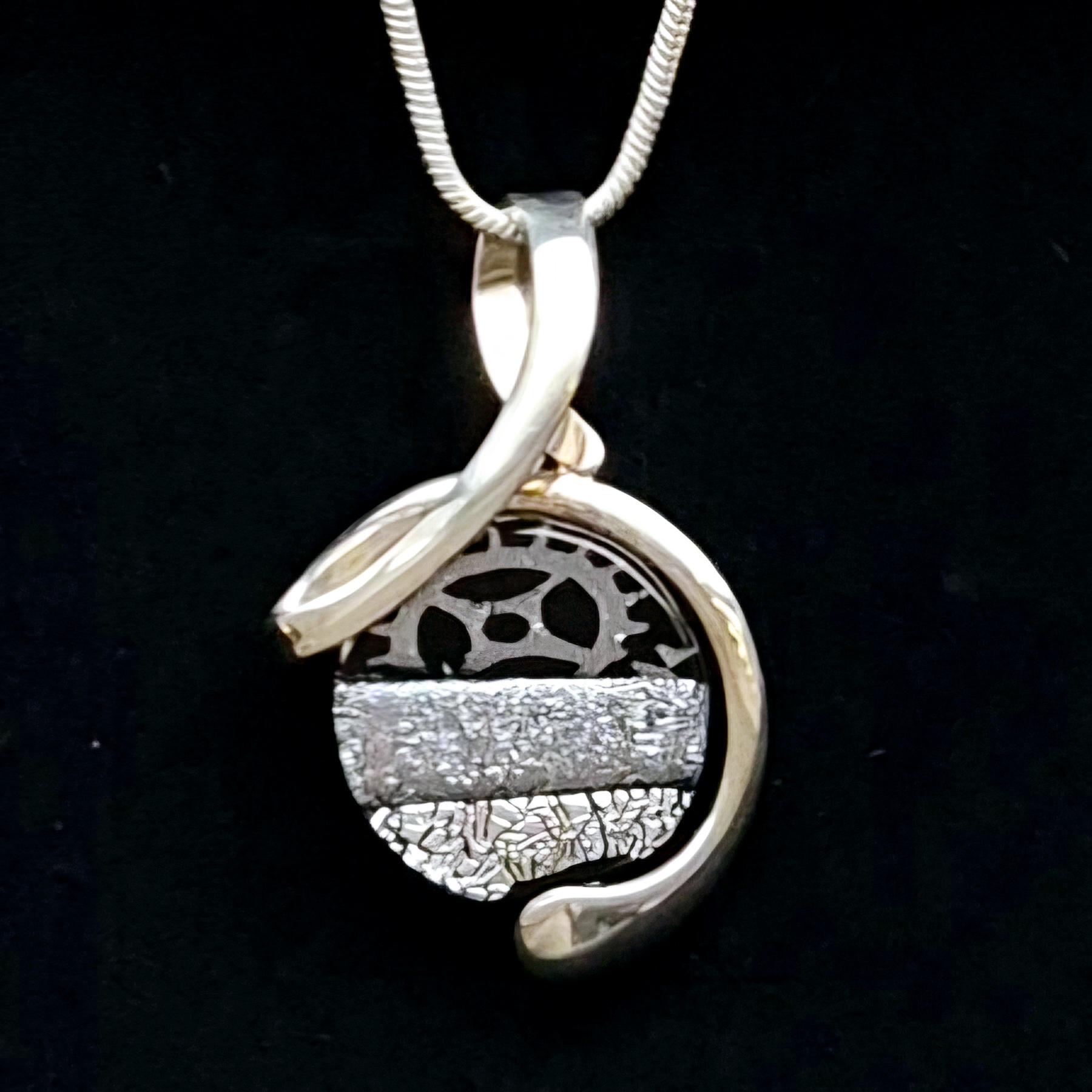 Halsband 2,8x4 cm, med handgjord glascabochon. Infattningen är en nickelfri stomme med en tjock silverplätering. En 2 mm ormlänk ingår, 45 cm. Om du önskar en annan längd (40, 50, 55 cm) så skriv det i meddelandefältet vid beställning.