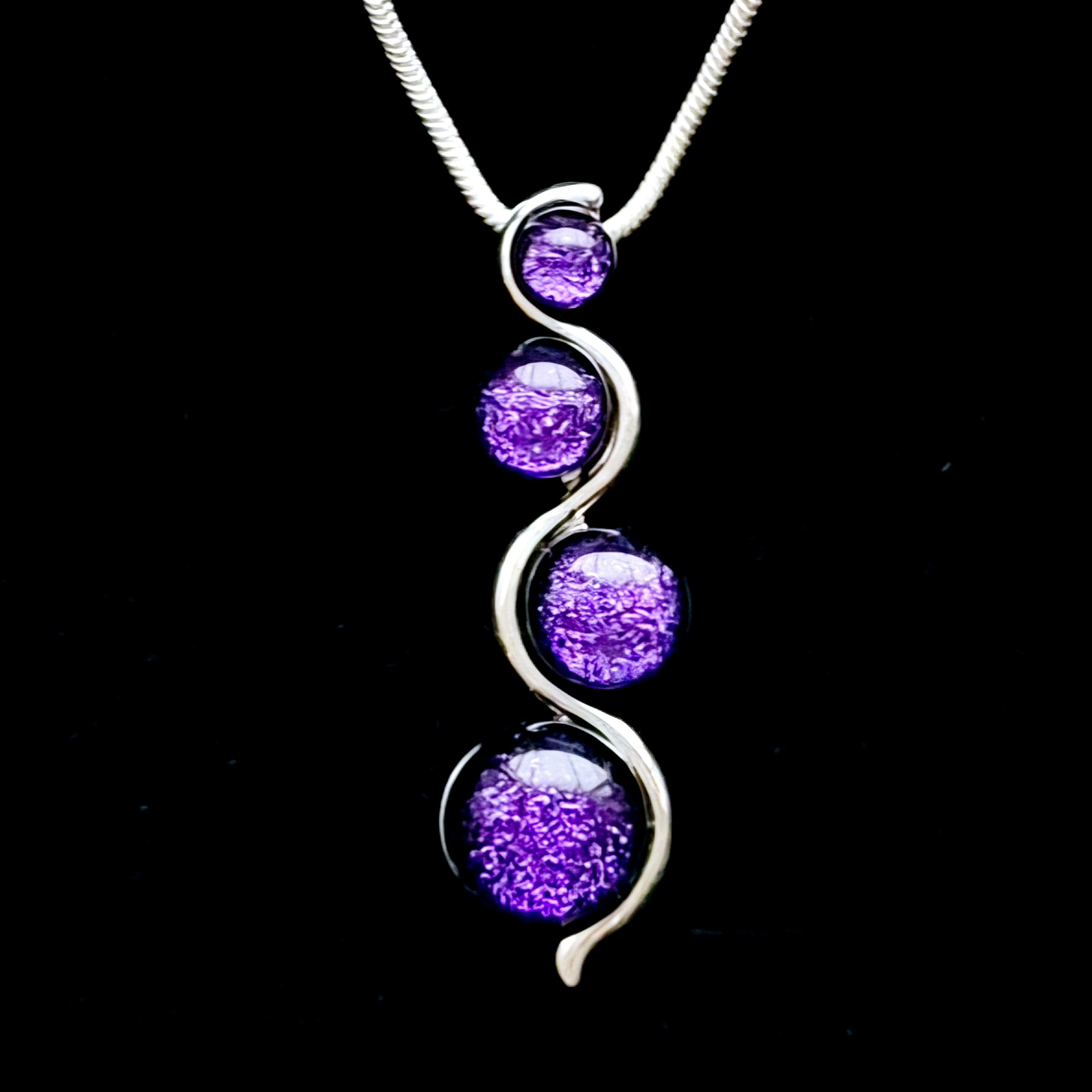Halsband 1,3x5,6 cm, med 4 handgjorda glascabochoner. Infattningen är en nickelfri stomme med en tjock silverplätering. En 2 mm ormlänk ingår, 45 cm. Om du önskar en annan längd (40, 50, 55 cm) så skriv det i meddelandefältet vid beställning.