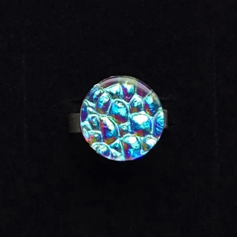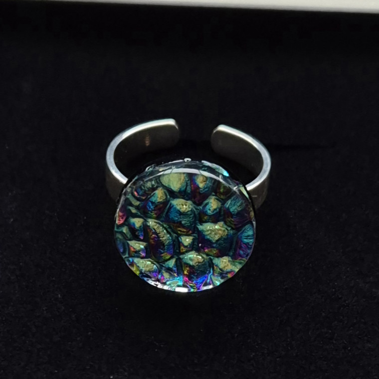 Stor ring med en fin glascabbe, öppen/justerbar stomme i silver, stl 18-20. Glaset är ca 16mm