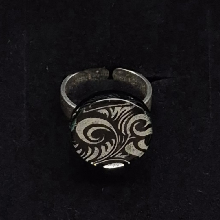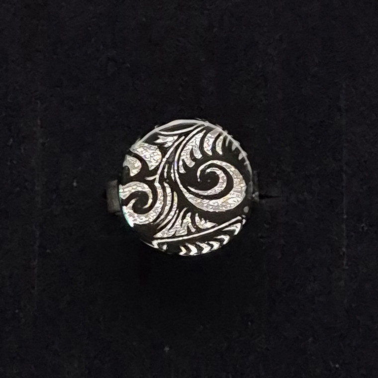 Stor ring med en fin glascabbe, öppen/justerbar stomme i silver, stl 18-20. Glaset är ca 16mm