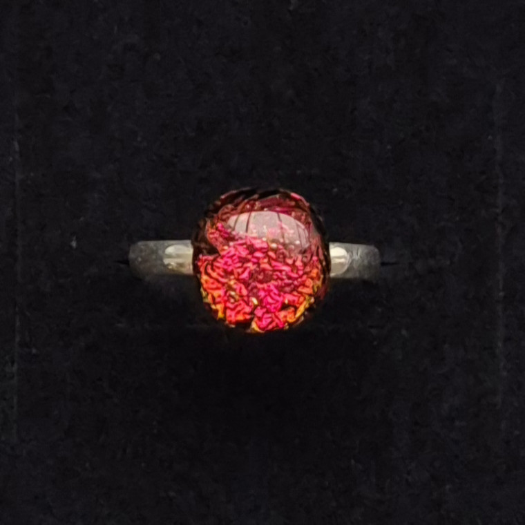 Ring med en fin liten glascabbe, öppen/justerbar stomme i silverplätterad nickelfri metall, stl 15-18